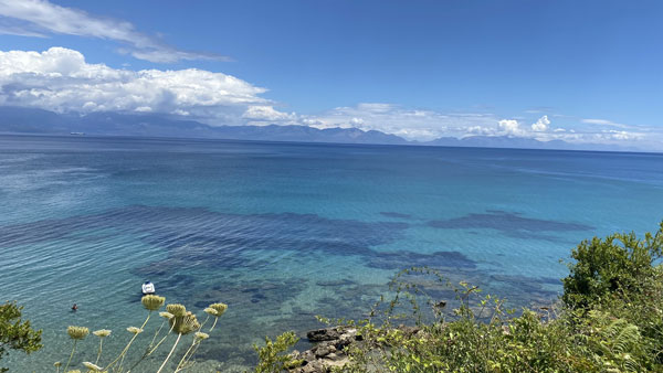 Der Frühstücks- und Abendessen“raum“ liegt direkt am Strand mit einem großartigen Blick aufs Meer und die Berge. Die Bucht vor dem Hotel ist super, wenn man aber kristallklares/türkisfarbenes Wasser haben will, sollte man sich etwas rechts halten, die nächste Bucht (150m) bietet genau das.