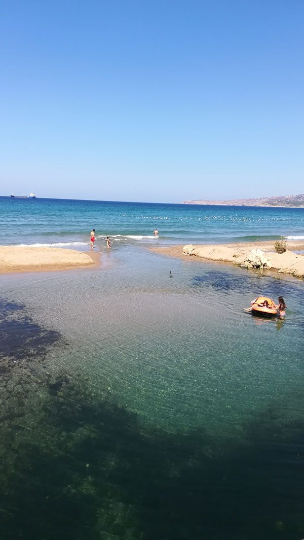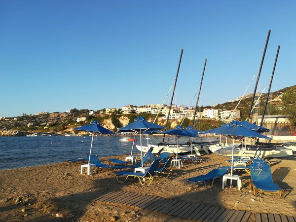 Der Ort Almyrida ist ein typischer kleiner, entspannter und ruhiger Strandort mit wenig Verkehr (keine Durchzugsstraße), mit diversen kleinen Läden und verschiedensten Lokalen. Die vorderste Reihe der Lokale ist direkt am Strand mit einfach fantastischer Lage.