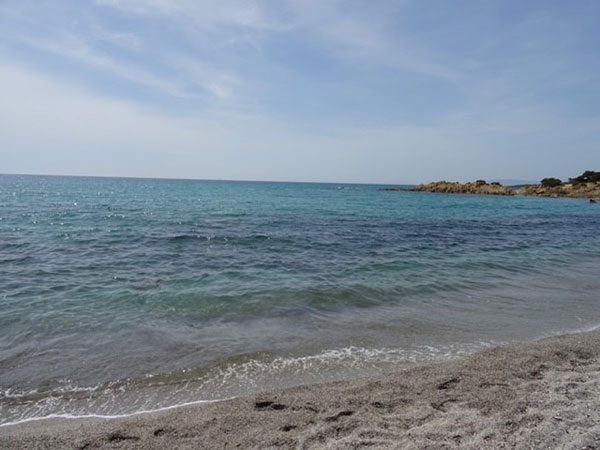 Über einen schmalen Pfad durch einen kleinen Pinienwald gelangt man zu den kleinen Badebuchten. Das Meer ist traumhaft schön; klares Wasser, schillernde Farben in verschiedenen Blautönen und eine gute Erfrischung an den warmen Tagen. Der Strandabschnitt besteht aus einer Mischung aus Sand-und Kieselsteinen.