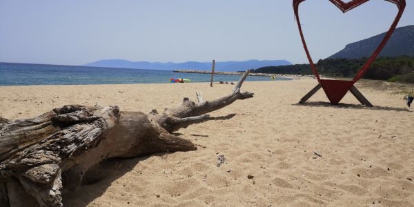 Zum Strand läuft man ca. 8-10 Minuten. Zuerst durch die langgezogene Hotelanlage, dann durch einen Pinienhain und zum Schluss noch über den Parkplatz. Mit SUP ganz schön anstrengend, mit gegenseitiger Hilfe ging es aber ganz gut. An der Rezeption konnten man sich auch Schirme für den Strand mitnehmen, das war klasse.