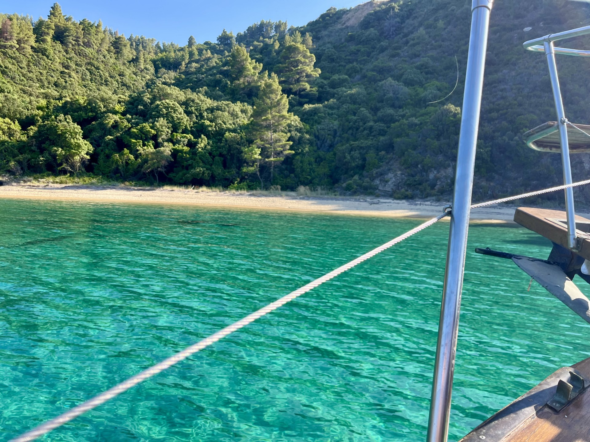 Der letzte Tag vor der Abreise begann für mich besonders stimmungsvoll mit einer Yoga-Session zum Sonnenaufgang. Im Anschluss sorgte ein Sprung ins erfrischende Meer für den perfekten Start in den Tag. Danach habe ich den Tag noch einmal am Strand ausklingen lassen und auch ein paar kleine Besorgungen in Sarti erledigt.