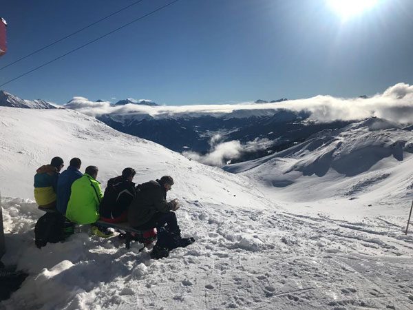 Hier erwartete uns sogleich das erste Urlaubshighlight: Die Fahrt mit der legendären Arosabahn durch verschneite Berg- und Tallandschaften! Endlich angekommen in Arosa wurden wir per Bus-Shuttle zum Sportclub gebracht, wo die vorherigen Gäste aufgrund unserer Verspätung ebenfalls noch etwas länger warten mussten.