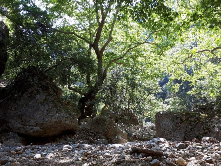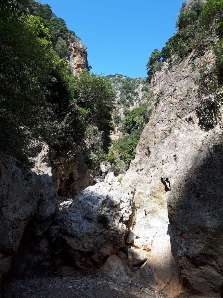 Am Mittwoch starteten wir nach dem Frühstück dann zur Tour in die Diktamos Schlucht. Per Bus ging es zum Einstieg. Dann ging es teils auf 2 Füßen – aber auch reichlich auf allen Vieren durch die Schlucht. Das war ein wirklich spaßiges Abenteuer. So machen Wanderungen auch mir als Biker Spaß. Die Schlucht ist wundervoll mit großen Gesteinsbrocken und tollen Pflanzen – wie Dschungel light. Die Klettertour endete in einer Taverne, wo es leckere lokale Spezialitäten zur Stärkung gab. Außerdem kam Petra und lieferte einige Bikes. Wer wollte, konnte mit dem Bus zurück. Aber diejenigen haben eine tolle Biketour mit tollen Aussichten und einer tollen Abfahrt nach Stylos verpasst. Nach dem wohlverdienten Abendessen gab es noch ein äußerst lustiges Tischtennisturnier.