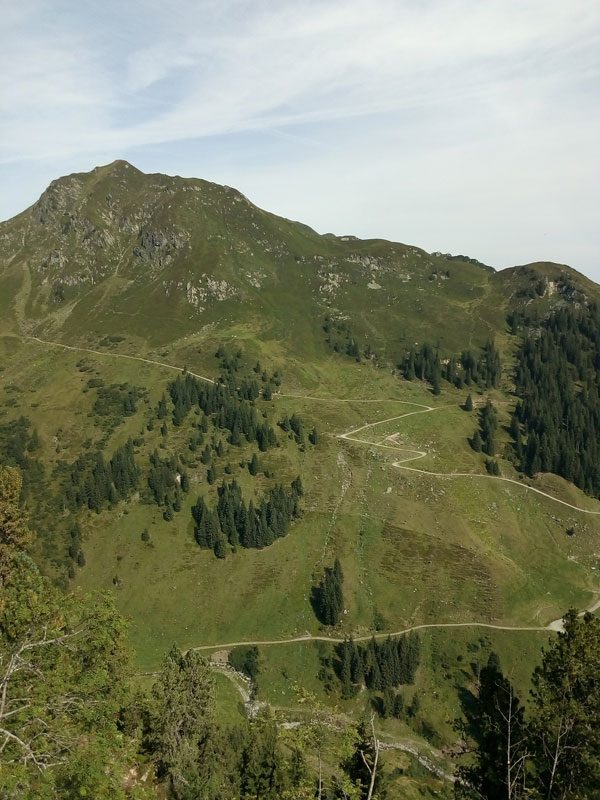 Mich zog es dann noch zur letzten Gipfelbesteigung unseres Hausberges dem Guggenkögele. Hierzu folgte ich dem Murmeltier Weg und genoss zum Abschluss meines Urlaubs noch ein paar schöne Ausblicke auf den Wilden Kaiser. Runter ging es mit der Gondel und im Tal hieß es dann schon Koffer packen und zum Abendessen fertig machen.