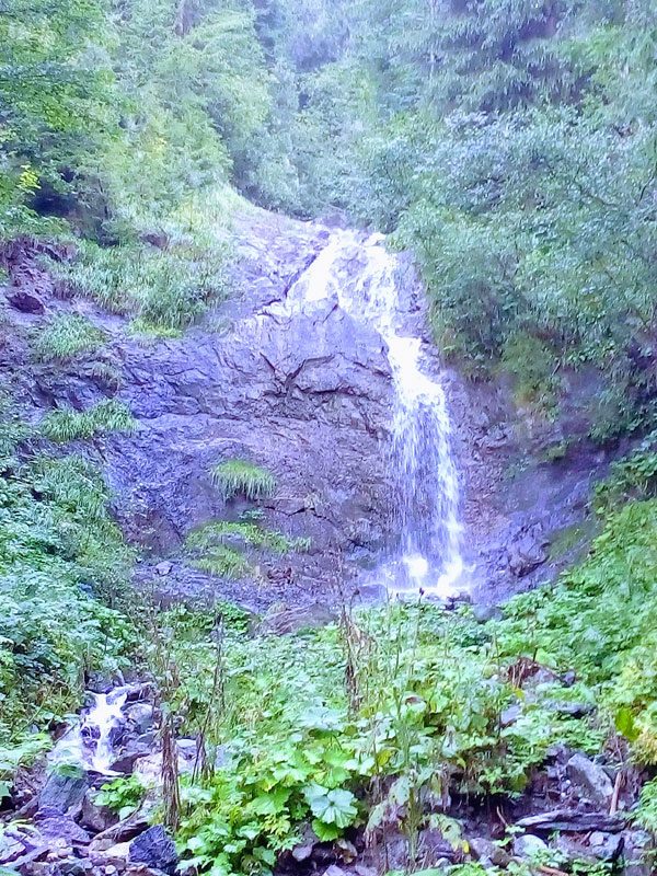 Am Dienstag, meinem letzten Tag vor Ort, entschloss ich mich die gestern für mich ins Wasser gefallene, geführte Wanderung des Wasserfall -Weges nachzuholen. Da ich diese Idee bereits beim Abendessen des Vortages Kund getan hatte, schlossen sich mir noch einige andere Frösche an und so ging es mit der Alpenrosenbahn hinauf zur Mittelstation.
