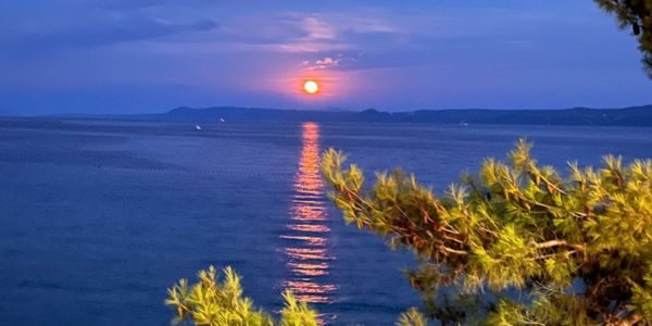 Von Köln aus bin ich mit dem Flugzeug zwei Stunden lang nach Kroatien geflogen. Nach der Landung hat uns ein Bus zum Hafen gefahren. Von dort ging es mit der Fähre weiter auf die Insel, und dann kam erneut ein Bus und hat uns quer über die Insel zum Hotel gefahren. Ich war pünktlich zum Abendessen da und war sehr hungrig.