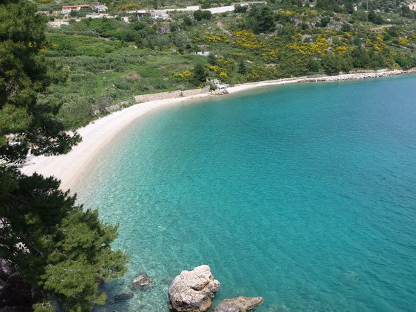 Aufpassen sollte man auf die vielen Seeigel, aber man sieht sie dank des klaren Wassers und Kiesuntergrundes sehr gut, die sichere Variante wären Badeschuhe.