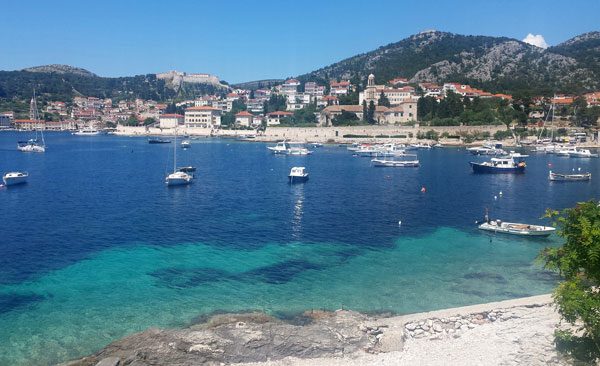 Am Freitag entschied ich mich für die Aufbuchung des Tages von der Wanderintensivwoche zum Wanderausflug auf die Nachbarinsel Hvar, 10 km/120 Hm. Die Fährfahrt dahin dauert je 2 Stunden, die Aussichten sind nicht so interessant wie bei der Anreise vom Festland auf die Insel Brac, aber man kriegt die Zeit irgendwie rum.
