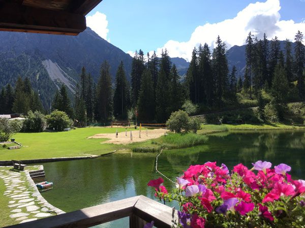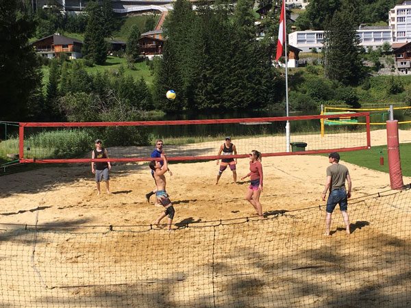 Endlich: Sonnencreme, Shorts, Bikini, Badesee, Beachvolleyball... und der Blick auf die wirklich wunderschönen Bergkulisse.