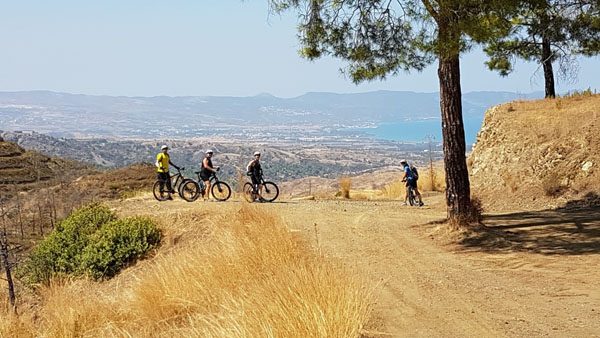 Mittwoch brachen wir wieder nach dem Frühstück zum Wandern und Moutainbiken auf. Mit 5 Teilnehmern starteten wir mit Thomas die Bike-Tour zum Argaka-Stausee --- lange Version mit 30km und 590 Höhenmetern. Eine schöne Hinterlandtour durch ruhige Natur, Pause am Stausee und Anstiegen va. über Schotterwege und durch den Wald. Am Meer ging es zurück mit Stopp am ´´Fly again´´, einem Pub / Taverne zum Hotel.