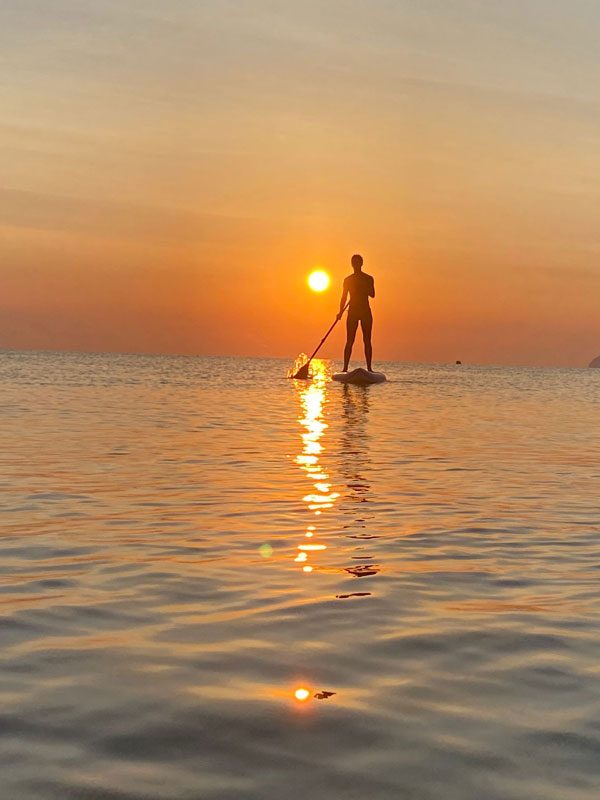 Der Strand ist wirklich sehr schön, das Wasser ist klar und wir hatten dazu das Glück, dass es 28° c warm war. Morgens und abends war das Wasser ruhig und tagsüber gab es schöne Wellen. So konnte man morgens auf eigene Faust oder in der Gruppe wunderbar SUP fahren. Ich selbst bin eigentlich kein Meer-Bader, war aber jeden Tag mindestens zweimal im Wasser.