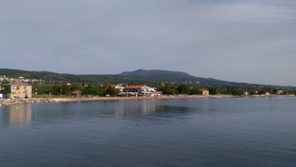 Agios Angelos ist überschaubar, ein paar Fischer gibt es noch. Der Hafen wurde neu (und groß) angelegt, um der Erosion der Strände entgegenzuwirken. Drei Restaurants am Hafen stehen neben Geschäften an der Hauptstraße: ein mittelgroßer Supermarkt mit urlaubsgriechischer Prägung, eine Bäckerei, eine Apotheke. Nach wenigen Metern ist man in den Olivenhainen.