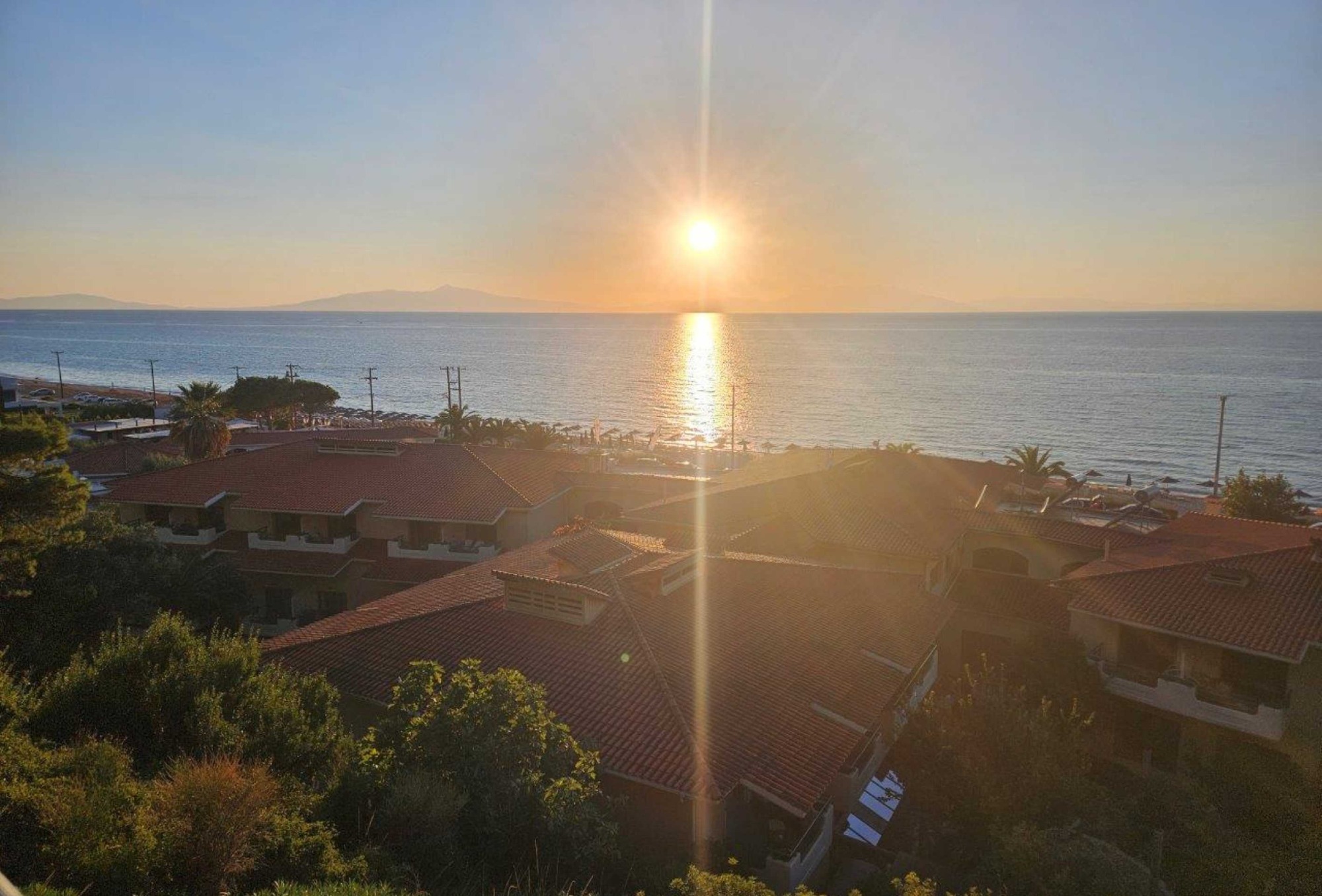 Der Hinflug mit Eurowings verlief reibungslos, obgleich uns die getrennten Sitzplätze etwas verärgerten. Die Wegbeschreibung aus den FROSCH-Reisedokumenten, um auf dem griechischen Flughafen zum FROSCH-Treffpunkt zu gelangen war gut und wir wurden dort schon von einer Dame mit FROSCH-Schild erwartet. Als erste Anreisende an diesem Tag kamen wir schon um 9 Uhr (Griechenlandzeit) morgens am Treffpunkt an. Leider stand für den Vormittag anscheinend nur ein Bus bereit, um alle Anreisenden gesammelt nach Kiopigi und Possidi zu bringen. Da einige Flieger Verspätung hatten, musste wir bis 11:30 Uhr am Flughafen ausharren, bis wir endlich abfahren konnten. Die Fahrt nach Possidi über Kiopigi dauerte nochmals ca. 100 Minuten mit dem Bus. Letztlich kamen wir mit 9 Personen um ca. 13:30 Uhr am Hotel an, wo uns auch schon Marie, eine der Guides, in Empfang nahm. Wir bekamen erste wichtigen Instruktionen, kurze Erklärung der Hotelanlage und den wichtigsten Räumlichkeiten, unbedingt Wasser kaufen im Shop für die Wanderung am Sonntag und vor allem die Handhabung der Toilettennutzung. Alles weitere und mehr Details sollten wir am nächsten Tag beim Gruppentreffen erhalten.
