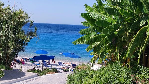 Aufgrund der Temperaturen wurde dieser zum Glück auch in dieser Woche angeboten. Als Alternative gab es eine Wanderung zum Seitani Beach mit Flo. Lisa hingegen kletterte und schwamm mit uns am Potami Wasserfall. Am `Baumhaus` konnten wir danach einen typischen Snack (Huhn, Lamm, Aubergine) aus dem urigen Ofen bekommen. Dann ging es zum unterhalb gelegenen `Hippie“-Beach, wo wir noch Live-Musik mit Songs der 70er geboten bekamen, bevor uns der Bus wieder zum Club brachte.