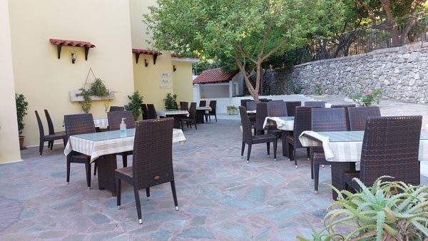 Das Abendessen gibt es in der zum Hotel zugehörigen Taverne direkt am Hang unterhalb des Hotels.