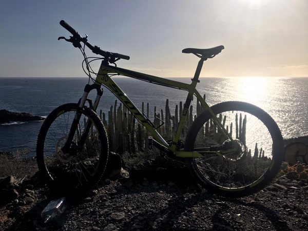 Nach minimalem Anstieg fuhren wir durch die wunderschöne Corona Forestal durchs Naturschutzgebiet über Schotterwege abwärts. Dabei durchquerten wir die unwirklichen „Arenas Negras“. Dann folgte noch ein knackiger Anstieg über Schotter, bevor wir im Las Esrtrellas einkehrten. Von dort ging es über Asphalt hinunter nach Playa San Juan.