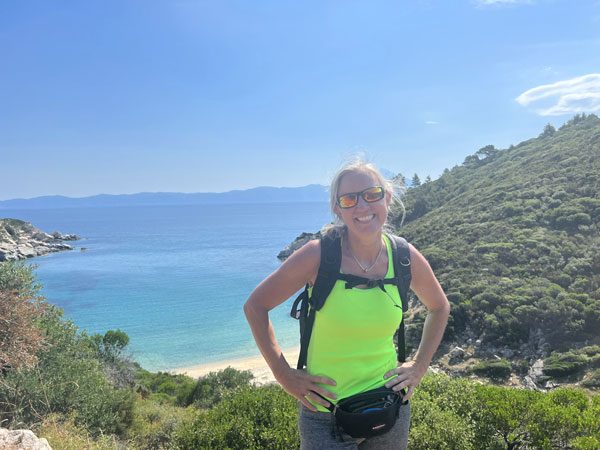 (Flug von Memmingen): Memmingen ist ca. 30 Minuten Fahrt, der Flug ging um 06:25 Uhr. Aufregend war das Finden des vorab gebuchten Parkplatzes und – ja – das Finden des Flughafens! Es ist ja nicht so, dass Memmingen super riesig ist und morgens um 5 Uhr ist da nichts beleuchtet. Der Weg vom Auto zum Flughafen war demnach mit großer Nervosität, denn langsam wurde die Zeit eng. Angekommen Thessaloniki, 1 Stunde Warten auf andere Gäste, 2 Stunden Busfahrt und dann endlich da. Bestes Wetter, Traumkulisse.