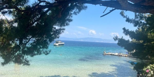Nach ca. 2 Stunden landen wir in Kavala. Der Transfer wird extern organisiert, und es geht mit anderen Urlaubsgästen per Bus zum nahegelegene Fährhafen. Die Überfahrt auf der Fähre dauert etwa 40 Minuten, danach geht es nochmal per Bus ca. 15 Minuten zum Hotel Aegean Sun.