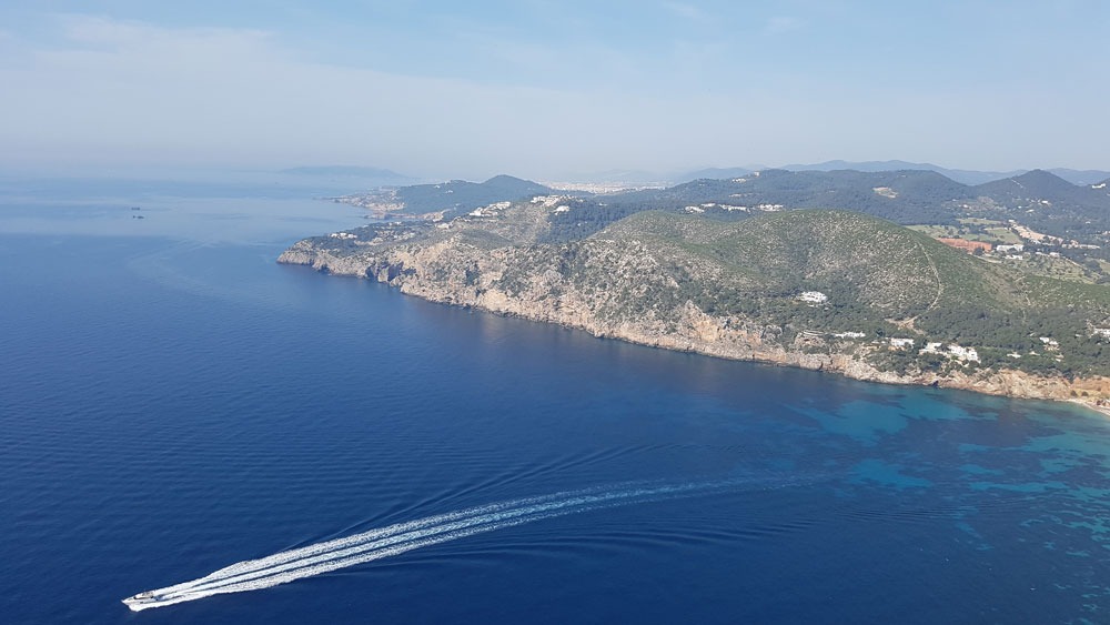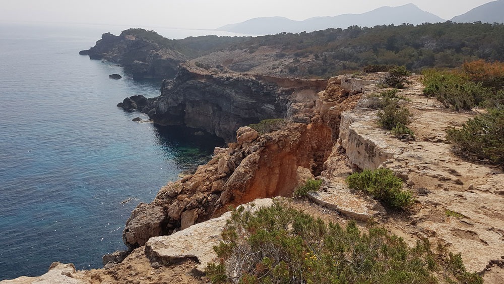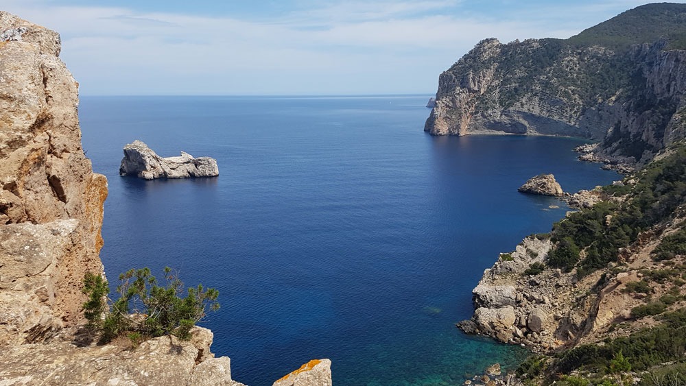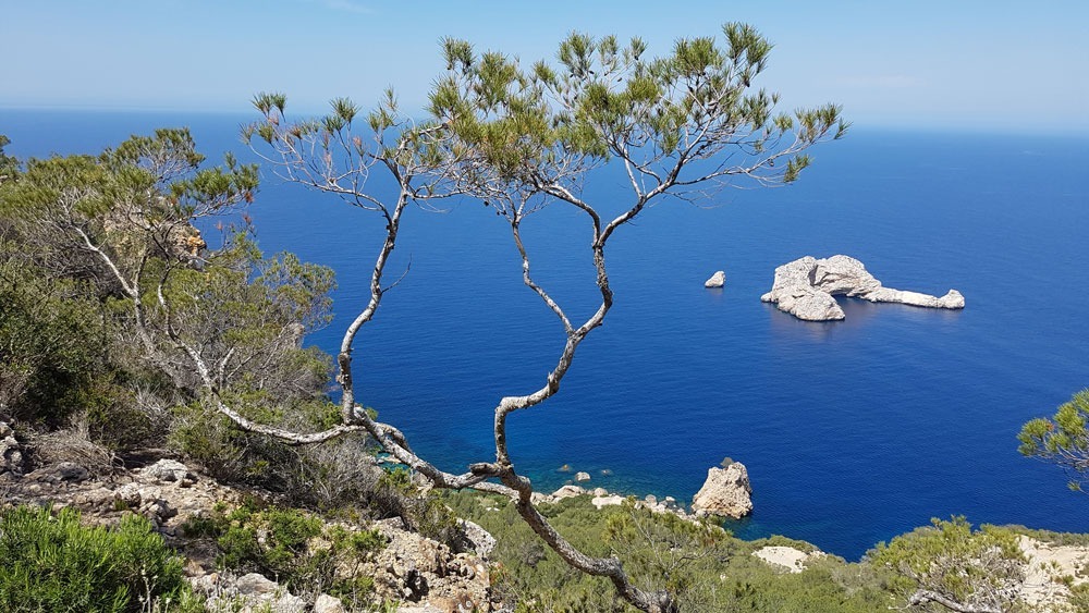 Die Cala Bassa und Cala Conta, mit ihrem weichen Sand und türkisfarbenem Wasser sind sicherlich mit die schönsten Badebuchten Ibizas. Der luftige Küstenpfad bietet uns immer wieder atemberaubende Ausblicke. Auf unserer Wanderung kommen wir an einem der Wachtürme Ibizas, dem Torre d'en Roviera, und der verlassenen „Rave Cave“ vorbei. Weiter geht es über die ruhige Cala Codolar zur Cala Llentia mit dem „Stonehenge“ (Can Soleil) von Ibiza mit ihren einzigartigen Steinsäulen.